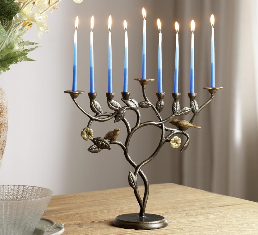 E. Eden Bloom Menorah VB35674 $108 Cast Aluminum 12"H 14"W 4.5"D Candles not included. Find menorah candle options online.