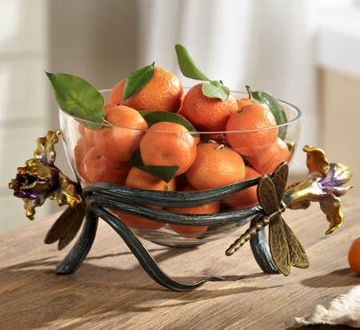 Cast Aluminum & Glass, 6"H 12"W 9"D Bowl is 8"DIA, Fruit not included.