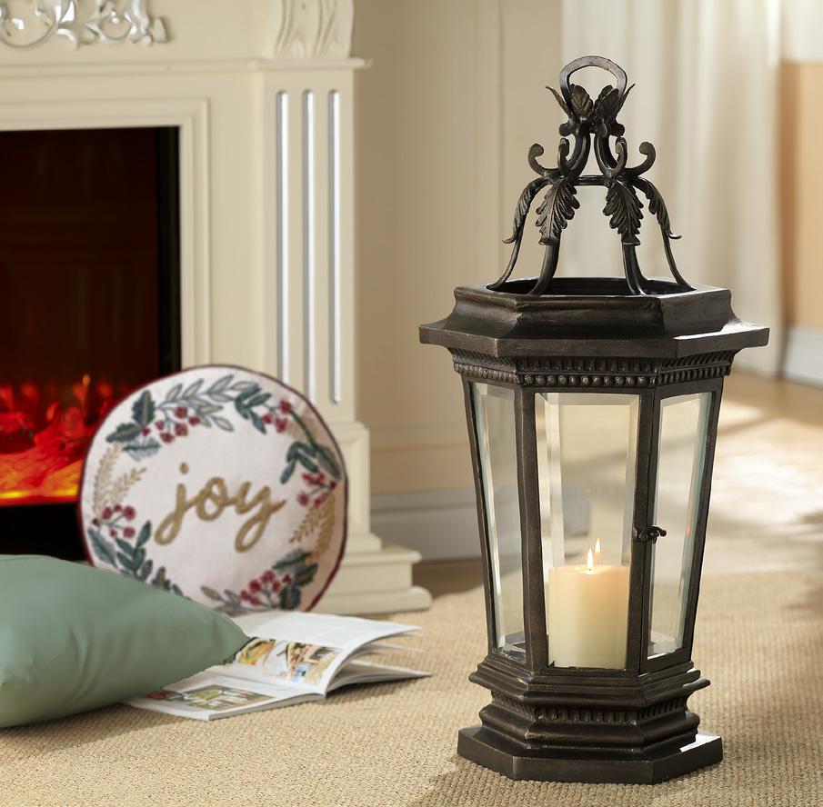 Cast Aluminum & Glass, 19.5"H 12"W 10"D Lantern has drainage hole. Candle not included.