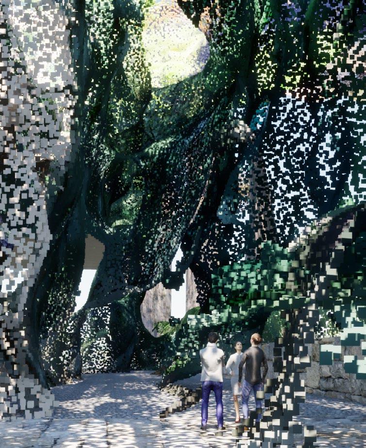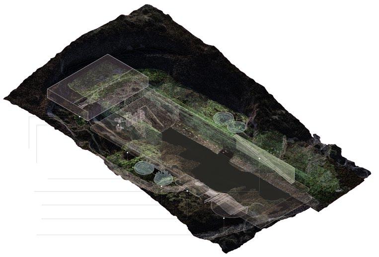 This project serves as an exact depiction of its name. Finding its inspiration rooted in the renaissance gardens, it is brought to life in a contemporary manner through the merging of multiple scans via the process of segmenting, merging, rotating, and alignment. These curated elements become unrecognizable from their origins and are then redesigned to take on a new life on this site. These scanned elements form the anchor for which the design formulates its architecture around. The project retains 2 dominant elements, water and the vegetation that wraps itself around it, in its attempt to define edges and spaces. The resultant design proposal, through scanning real-world objects alongside physical models, is a water garden to be used as an open recreational space.