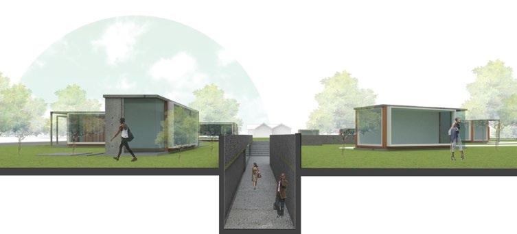 In an attempt to begin a conversation about the socio-economic issues in Clarksdale, MI, the project proposes a method in which the major income becomes reclaimed by the residents of Clarksdale rather than the large-scale, franchise restaurants that currently dominate the community’s economy. It further engages the issue of the lack of recreational spaces for youths within Clarksdale. Using a contextual field study analysis that links the current food-selling stores and the schools via the fastest route by car, the project creates a set of rules for which the design program is formulated around. The use of prefabricated enclosures from the shipping containers that bring food in and out of the city becomes a starting point for food ‘hot spots’ and rentable spaces for community members. Underground, we begin to see multi-use, recreational spaces for the youth to interact.