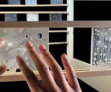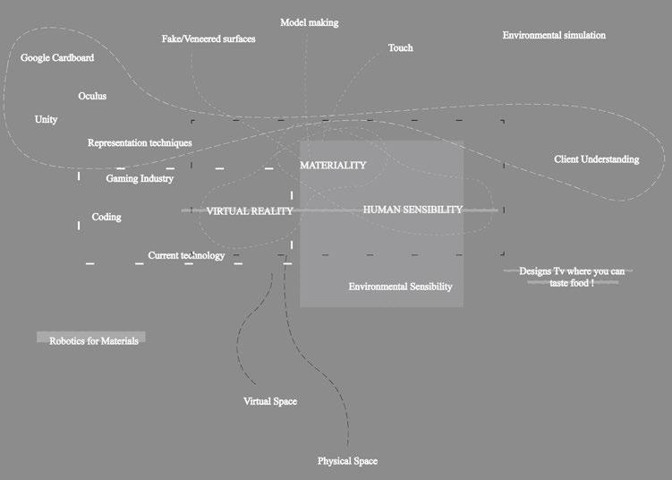 The direct link between materiality, technology and human interection is something we explore within this project. Looking at the idea of haptic technology and how that could begin to impact how we as architects engage with interior spaces. This project takes on a thesis that the virtual and physical can converge and coexist, allowing real time interaction with materiality in both the virtual realm and its physical counterpart. It recreates a pre-existing physical space in a virtual world and attempts to embody materiality and sensisbility as effectively possible. Each physical compotent has a virtual parallel and in this study, it operates on the idea of one being able to select and design physical spaces without a direct presence. The idea is that you can feel, move and apply various materials through a VR headset and whatever action you make in the virtual will translate to the physical.