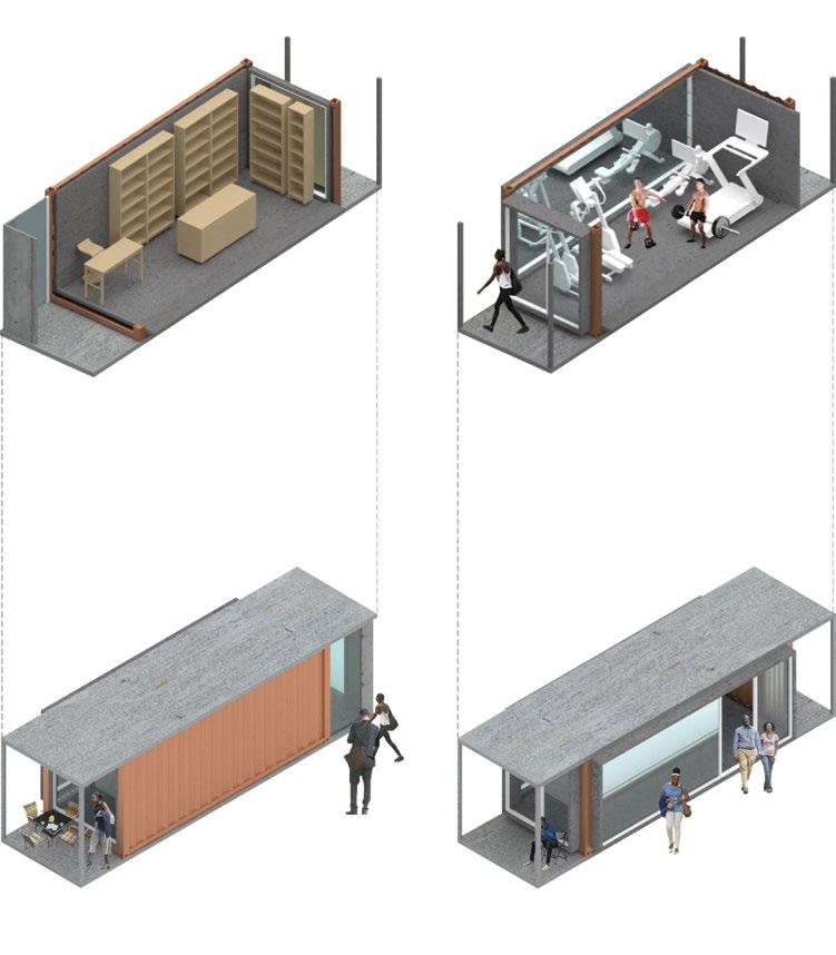 Site Research focused on this neighborhood shows a variety of families with kids below the age of eighteen. In order to bring some form of aid to members of the community who work with the lack of places to safely watch over their children, these prefabricated, habitable facades have been built onto the current houses of the block. There is a variety of modules on offer that are dependent on the consent of the owners of the houses. All of these modules, centered around a multitude of recreational spaces allow for neighbors to begin to interact with each other, bringing the community closer together. Furthermore, considering the lack of local grocery stores, the reclaimed facade