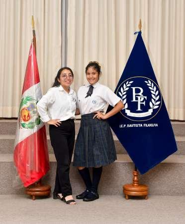 Fotografía con uniforme escolar o toga acompañado de su profesor(a).