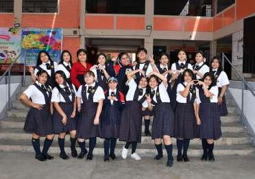 Toma de foto grupal en el colegio.