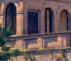 and geometric patterned tiles, surrounded by cypress trees and climbing plants. Above,