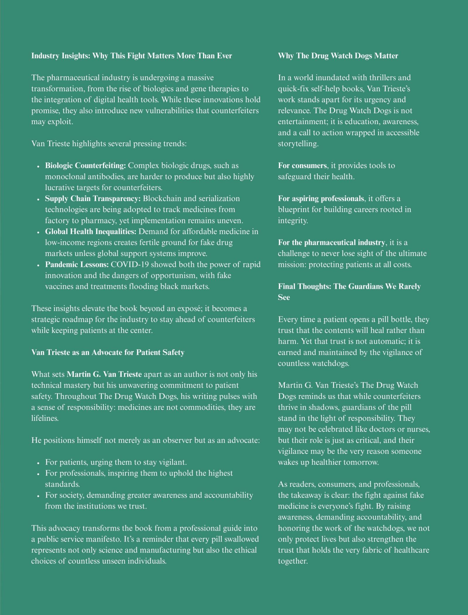 From a promising pharmacy student to a biopharmaceutical leader, author, and creative visionary, Martin Van Trieste's story is a testament to dedication, integrity, and the courage to reinvent oneself. As the worlds of science and storytelling continue to converge in his work, Martin exemplifies a rare blend of intellect, compassion, and imagination, truly a visionary in every sense of the word.