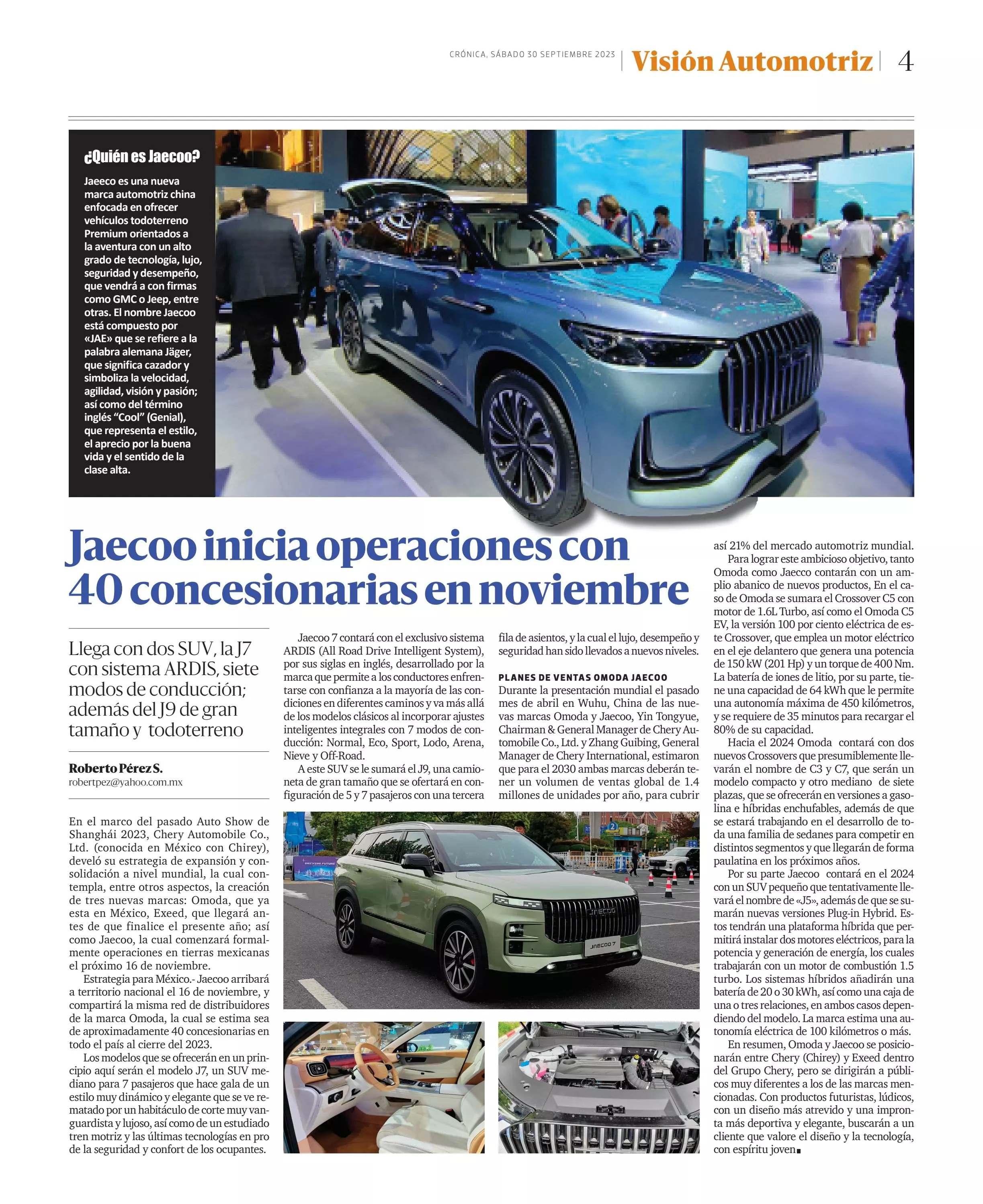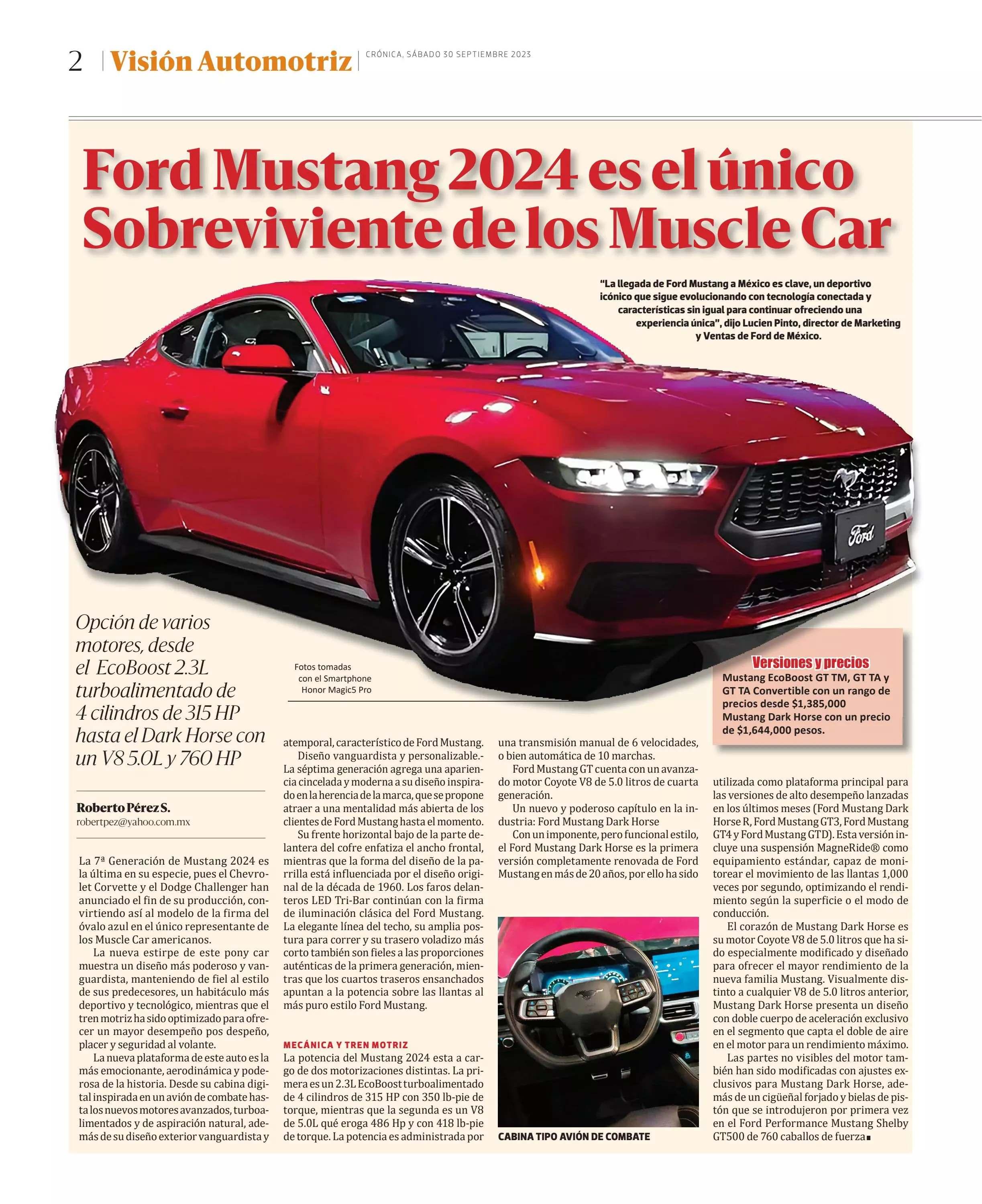 Suplemento Visión Automotriz edición 30 Septiembre 2023 encartado en el periódico La Crónica de Hoy. Visión Automotriz es una revista especializada en el sector automotor, donde presenta pruebas de manejo de los nuevos modelos, auto show, entrevistas, reportajes de vehículos y todo lo que acontece en el mundo del motor.