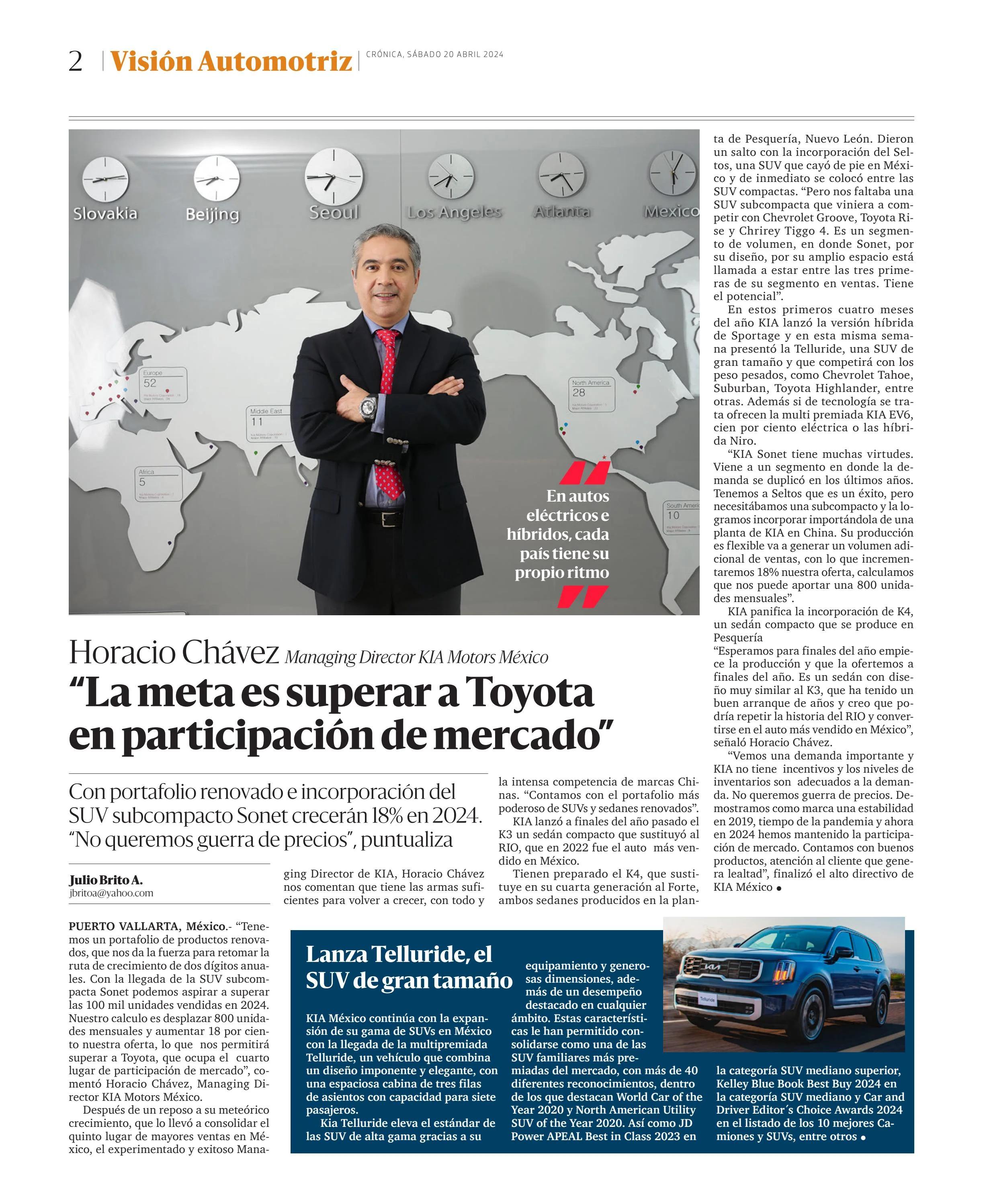 * La meta es superar a Toyota en participación de mercado en el 2024: Kia México.