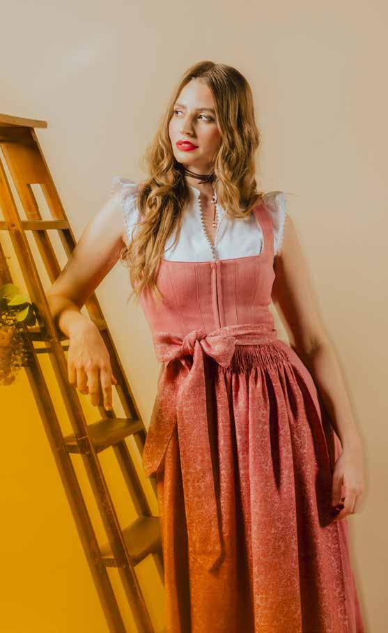 Das Trendmaterial des Trachtensommers heißt Leinen. Akzente entstehen durch luftige Schürzen in Kontrastfarben.
