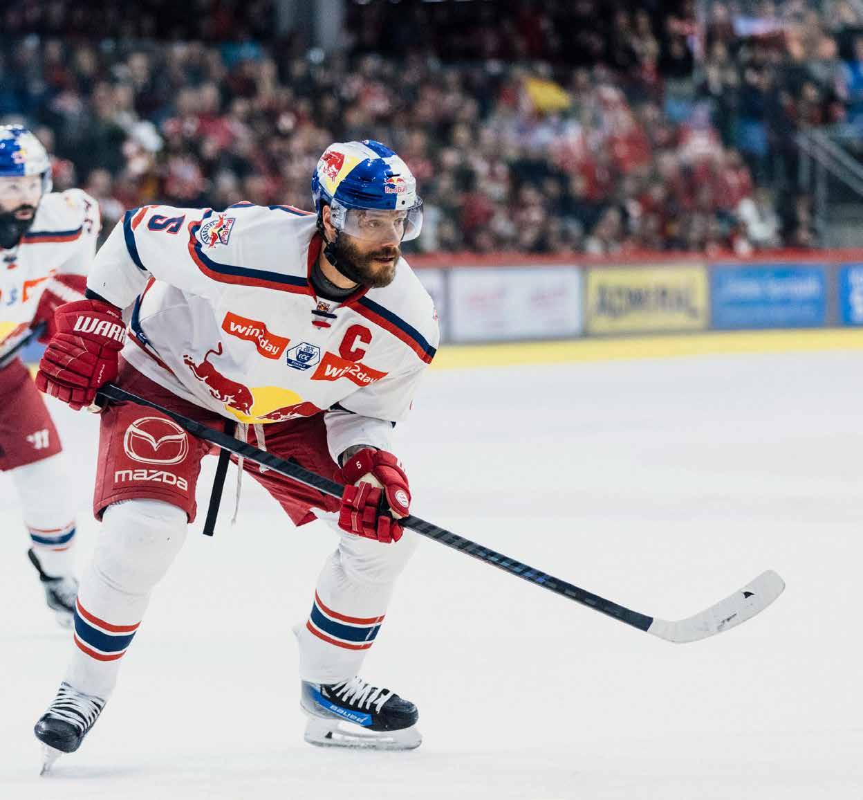 machen Verena und ich uns fertig, wecken die Kleine auf und frühstücken. Bevor es für mich in die Eisarena geht, bringen wir sie in die Krabbelgruppe.« Die meisten Wege erledigt Thomas mit dem Fahrrad. Von acht bis zwölf Uhr trainieren die Bullen intensiv, dann folgt eine kleine Mittagspause, bevor es für die Männer zu Therapien, Massagen oder weiteren Trainingseinheiten geht. »Gehört alles dazu«, sagt der Teamkapitän. Genauso wie die 48 Spiele im Grunddurchgang der ICE Hockey League, die bis zu 20 Play-off-Matches oder Sonderaufgaben, wie Champions League, Europameisterschaft, Weltmeisterschaft. Auf diesen Takt ist er auch weiterhin heiß, so viel ist klar. Ein Mitgrund, warum er mit 39 Jahren noch so topfit ist: »Ich hatte nie gröbere Verletzungen, wenn ich mir was zugezogen hab’, ist das immer restlos ausgeheilt.«