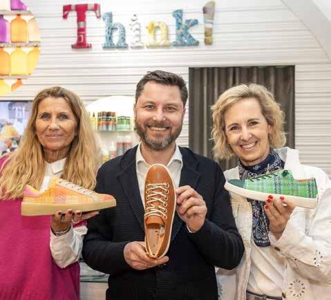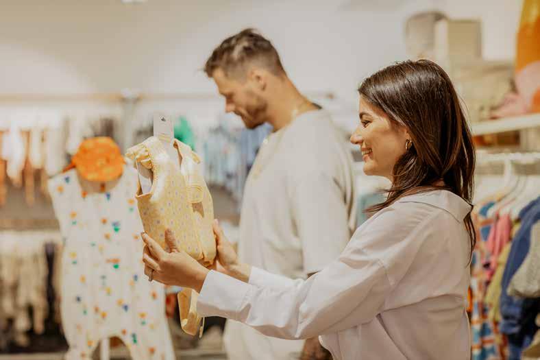 Thomas Raffl mit Anni Friesinger-Postma. Die frühere Eisschnellläuferin ist heute Inhaberin des Family Concept Stores, der nicht nur für die Kleinen bunte Kleidung und Accessoires parat hat. »Auch die Mütter möchten sich etwas Hübsches gönnen«, schmunzelt Verkäuferin Berna Schalk. Auch Anni steht immer wieder im Laden. »Ihr Fingerspitzengefühl bei der Auswahl der Produkte gefällt uns total«, loben die Raffls.