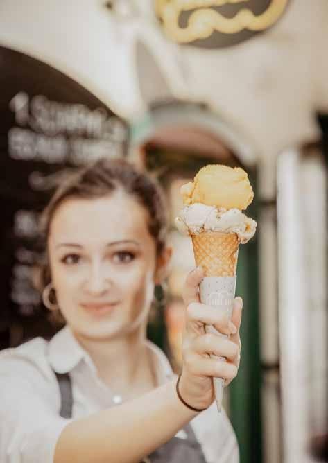 Handgemachtes Gelato – so gibt es das nur in Salzburg. Von Hand und in kleinen Chargen hergestellt, entstehen bei Mozart Gelato & Delights Eisspezialitäten der Extraklasse. Inspiriert von österreichischen Desserts finden sich im Sortiment klassische Geschmacksrichtungen aus natürlichen Zutaten. Lass dich verzaubern von Sorten wie Mozart Classic, Königin der Nacht, Frozen Kaiserschmarrn sowie feinen Petit Fours, Macarons, Kaffee und kreativen Souvenirs. Öffnungszeiten: SO 11.00 – 21.00 Uhr