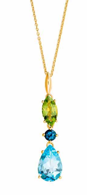 Kette & Ohrringe mit Topas und Peridot in Gelbgold, gesehen bei Juwelier Größwang, Linzer Gasse 24