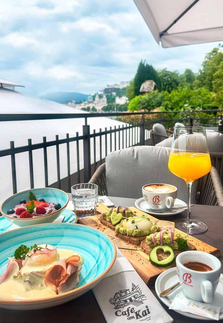 Direkt an der Salzach bietet das wieder eröffnete Café am Kai mediterranes Flair, Frühstück mit Bioeiern, Snacks, Aperitivo-Kultur und italienischem B-Café-Espresso Spitzenkaffee. Die sonnige Terrasse mit Altstadtblick lädt zum Verweilen ein – ein stilvoller Wohlfühlort mit Seele für Genießer.