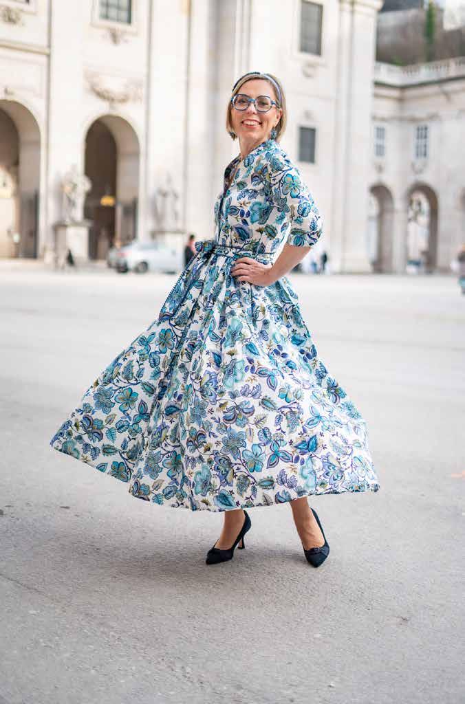 Motiv-Kleid gesehen bei Herzstück Mode, Goldgasse 12