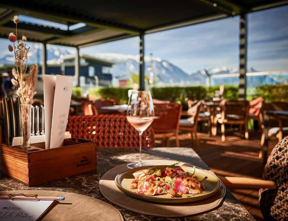 Endlich wieder da für Gäste ist der Red Bull Hangar-7. Rechtzeitig zur Grillsaison sind in der Outdoor-Lounge die Renovierungsarbeiten abgeschlossen. Auf Thomas Raffls Teller darf dann abends alles von Fleisch und Fisch (»Die Calamari sind der Hammer!«), das zuvor Hitze vom Grill abbekommen hat. »Und ein Salat gehört für uns auch immer dazu«, ergänzt Verena. Beide mögen die chillige Atmosphäre, besonders wenn DJs live auflegen und Summer-Vibes in die Ohren bringen. In das mit zwei Michelin-Sternen ausgezeichnete Restaurant Ikarus geht es für das Paar zu besonderen Anlässen, am Hochzeitstag beispielsweise ist Fine Dining angesagt. Da passt exklusiver Genuss gut dazu, meinen die beiden. Doch nicht nur wegen der kulinarischen Genüsse schätzen die Raffls diesen place to be, sie erleben ihn auch als einen Ort der Begegnung. Der »neue« Red Bull Hangar-7 wartet nun mit technischen Updates und frischem Raumkonzept auf.