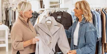 »You are not fully dressed unless you wear a smile!« ist das Motto bei Misc.Fashion. Ein Outfit aus anthrazitfarbenem Rock – »juhu, mit Taschen, freut sich Susanne – und passendem Oberteil zaubert ihr im Handumdrehen ein Lächeln ins Gesicht. Genauso flott hat Inhaberin Michaela mit fachkundigem Blick die Kombi ausgewählt. Sie bessert kurz noch am Gürtel nach und stellt fest: »Wir tasten uns Schritt für Schritt ans perfekte Outfit heran. Ton in Ton – heuer voll im Trend.«