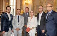 Die Altstadtgarage feierte 50. Geburtstag im Schloss Mirabell. Im Bild Aufsichtsratsvorsitzender Tarik Mete, Bürgermeister Bernhard Auinger, Geschäftsführer Christian Mooslechner, Moderatorin Katrin Prähauser, Contipark GF Michael Kesseler und Helmut Sattler, ehem. GF der Salzburger Parkgaragen.