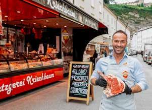 »Der Franz Kriechbaum, das ist der Metzger meines Vertrauens – und meines Herzens«, schmunzelt Mucky. Denn der charmante Chef der Lochener Traditionsmetzgerei weiß genau, was die Filme-Macherin mag: »Er hat immer Ideen, wenn ich Gäste erwarte. Unlängst zum Beispiel: feinstes Fleisch für den Tischgrill. So für mich vorbereitet, dass ich das gemeinsame Essen voll und ganz genießen konnte!« Und noch ein Genuss-Tipp von Mucky: die Trüffel-Salami – ein Traum!