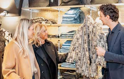 »Wenn wir gemeinsam einkaufen gehen, dann oft hierher«, sagt Susanne. »Was meistens nicht gut für mein Konto ist«, ergänzt Mama Mucky schmunzelnd. Denn bei Ennsmann wartet Fashion at it’s best: Jetzt, vor der kalten Jahreszeit, stapeln sich flauschige Mohair-Strick-Pullover in knalligen Farben und dazu passende Schals in den Regalen. »Heuer auch ein Riesen-Thema: erdig-warme Töne wie Schokobraun, Sandbeige und karamelliges Camel. Und dazu natürlich die passenden