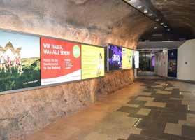 Das umfassende Redesign setzt auch bei den Werbeflächen der Progress Werbung neue Maßstäbe. Edelstahl-Vitrinen mit innovativen Schließsystemen wurden installiert, die Tafelwerbung erfuhr ein Upgrade auf hinterleuchtete Backlights und es wurde digitalisiert: Digitale Screens in unterschiedlichen Formaten, ermöglichen es, in brillanter Qualität, schnell und flexibel auch dynamischen Content auszuspielen.