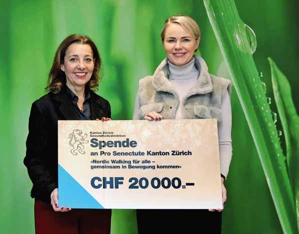 Zürich, 5. Dezember 2025 Ein starkes Zeichen für Gesundheit und Gemeinschaft: Regierungsrätin Natalie Rickli überreichte die Weihnachtsspende der Gesundheitsdirektion des Kantons Zürich an Véronique Tischhauser-Ducrot, Vorsitzende der Geschäftsleitung von Pro Senectute Kanton Zürich. Mit der Spende wird das Projekt «Nordic Walking für alle – gemeinsam in Bewegung kommen» unterstützt. Von Januar bis Juli 2026 erhalten ältere Menschen die Möglichkeit, kostenlos an Nordic-WalkingKursen von Pro Senectute Kanton Zürich teilzunehmen – unabhängig davon, ob sie erste Schritte wagen oder Erfahrung mitbringen. pszh.ch/nordic-walking