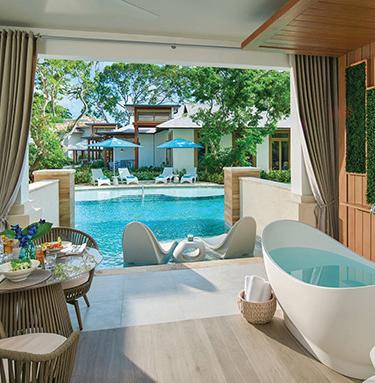 Among the first distinctively eco-luxury and sustainably designed resorts in the Caribbean, it aligns with the modern traveler’s focus on green-living and well-being. This 422-room, all-inclusive beachfront resort is Barbados’ largest and offers more meeting, event and wedding space than any other. Wellness offerings reign supreme here, from the luxurious spa and fitness center to farm-to-table dining. There are separate sections for adults and families, and the latter is catered to with family-friendly activities and amenities. From its storied past to its forward-thinking present, Sam Lord’s Castle Wyndham Grand Resort now stands ready to surprise and delight future travelers to Barbados.