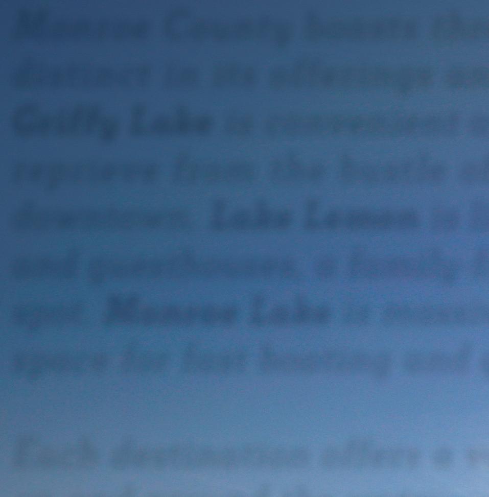 Monroe County boasts three lakes, each distinct in its offerings and experiences. Griffy Lake is convenient and quiet, a quick reprieve from the bustle of campus and downtown. Lake Lemon is lined with homes and guesthouses, a family-friendly vacation spot. Monroe Lake is massive, with plenty of space for fast boating and quiet fishing.
