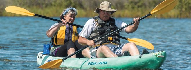 EQUIPMENT & RENTALS | Choose from a wide selection of rentals at Wind & Wave Watersports, including fishing kayaks, recreational models, and paddleboards, perfect for exploring the Gulf Coast Capital. With daily and weekly rental options and free test demos, they make it easy to gear up for a fun and safe paddling adventure. Roy’s Bait & Tackle offers a variety of kayaks for rent, whether you’re fishing, exercising, or just enjoying a day on the water.