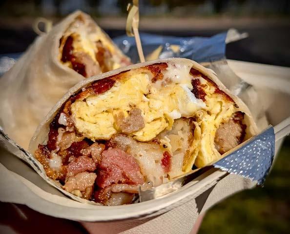Ham, sausage, bacon, cheddar, egg, onions and chipotle sauce