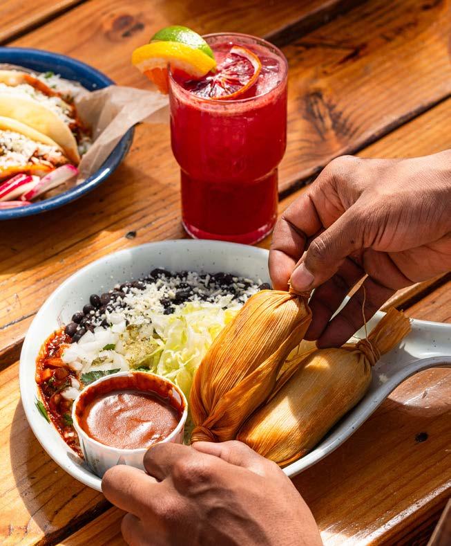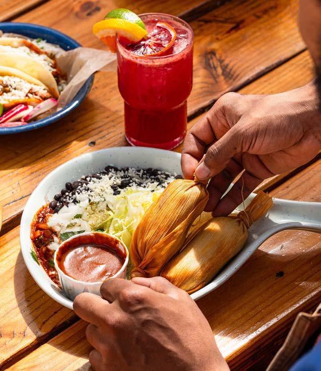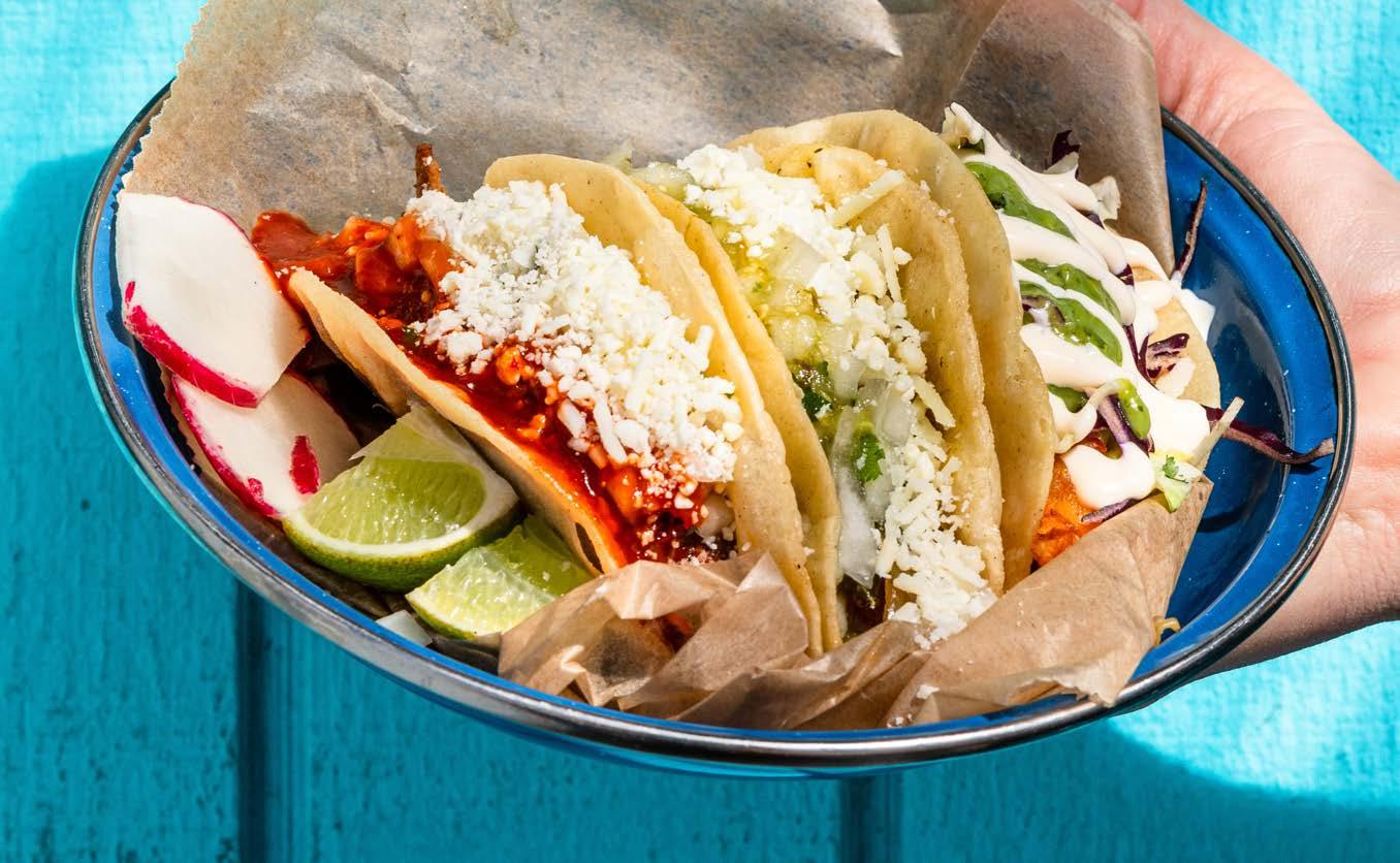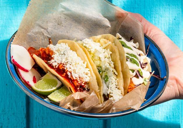 El Sancho’s food remains as unfussy and glorious as ever. Just real-deal Mexican street food best eaten near a pile of napkins. Fried plantains, served with a tonguetingling dollop of serrano aioli, are the perfect little snack. And the tacos still crush it—carnitas dripping with salsa verde, barbacoa buried under a pile of Cotija cheese and grilled mahi-mahi fresh enough to summon a sea breeze.