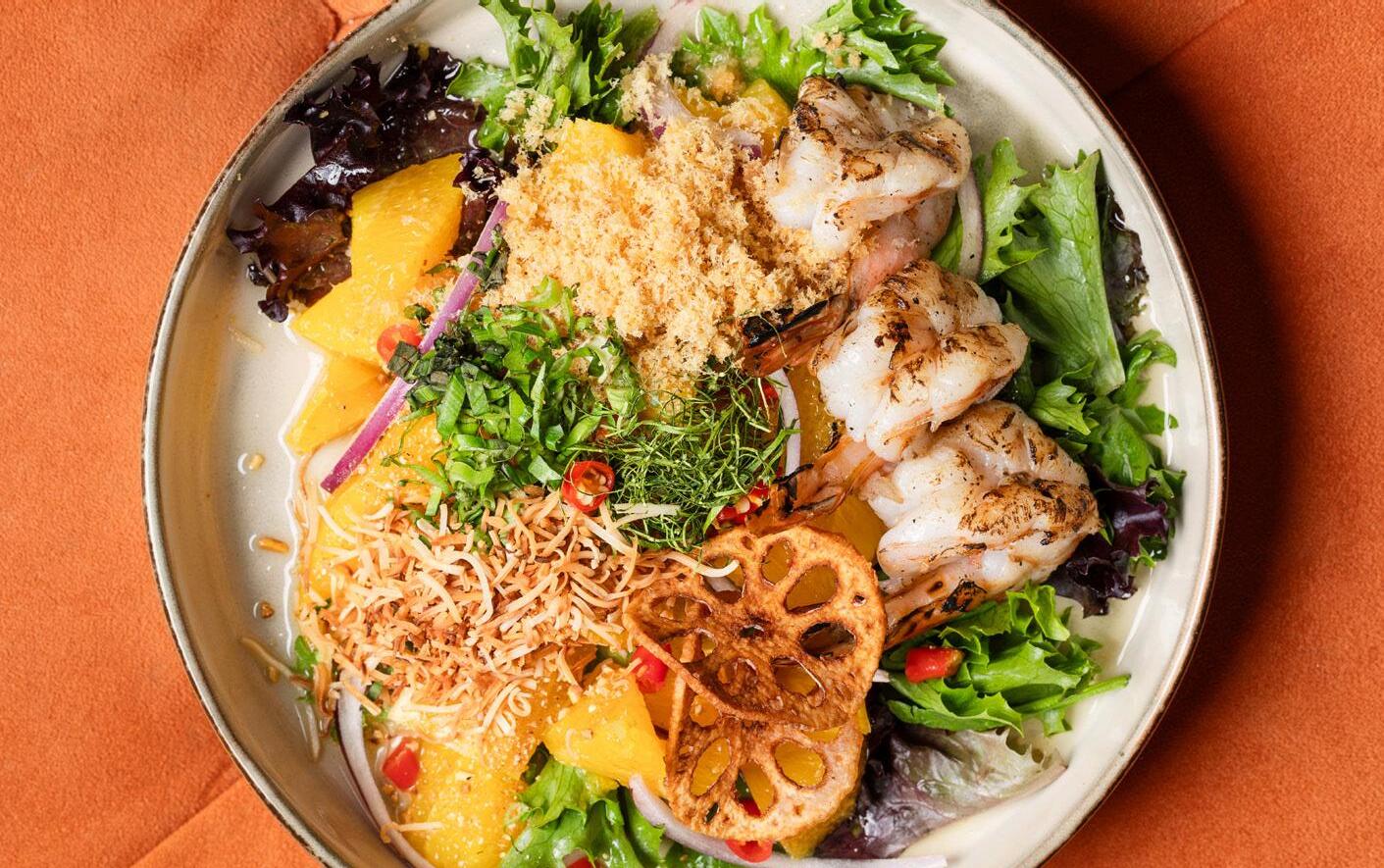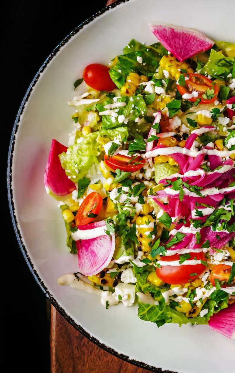 Romaine, grilled corn, pickled onions, cilantro, cherry tomato, watermelon radish, cotija, Baja sauce and Fresno chili vinaigrette