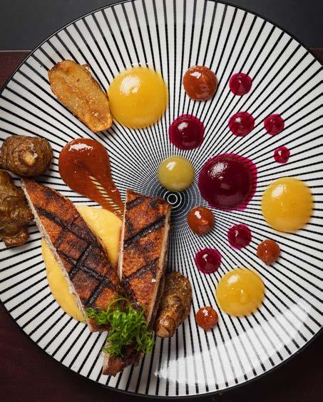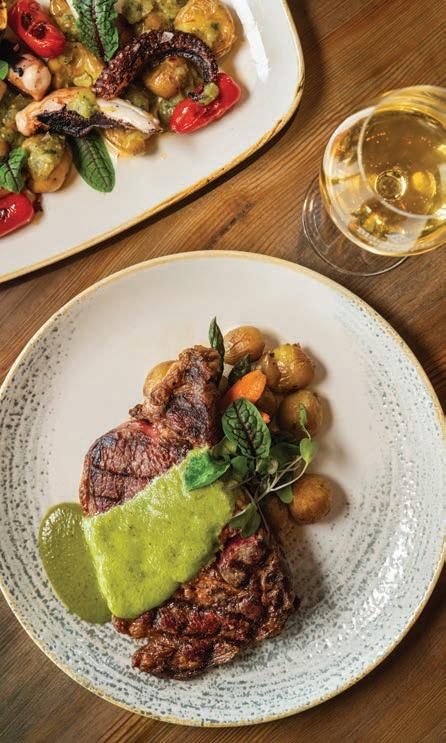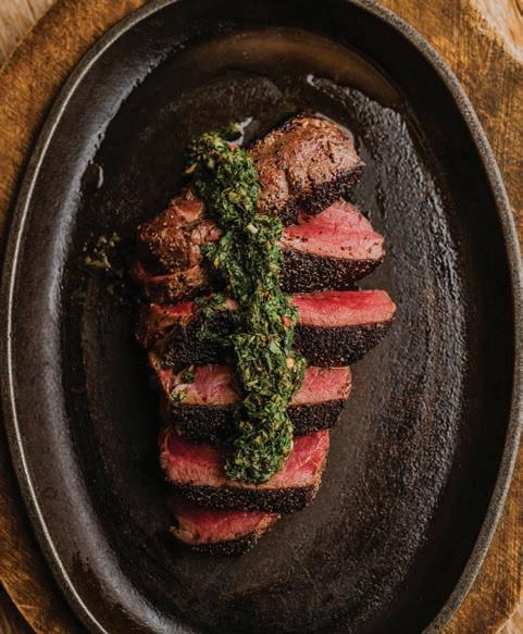 21-day aged, full bodied with a rich beefy flavor, a New York Strip has a firm texture yet is well-marbled and tender to eat. Grilled to order and topped with a chimichurri compound butter. Served with garlic mashed potatoes and seasonal vegetables sample menu
