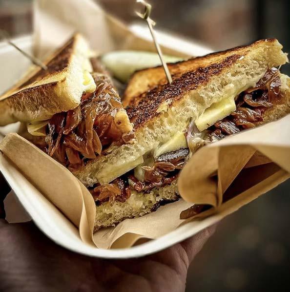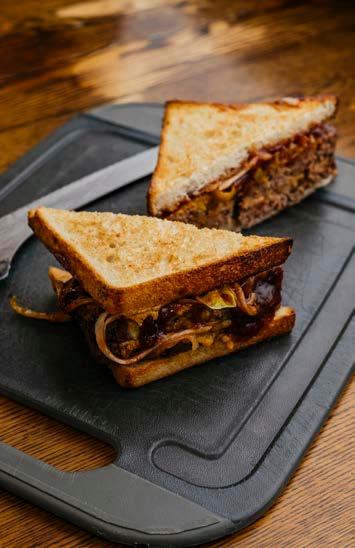 Scratch-made meatloaf with cheddar cheese, onion, pepperoncini and BBQ sauce toasted on Sparrow sliced sourdough