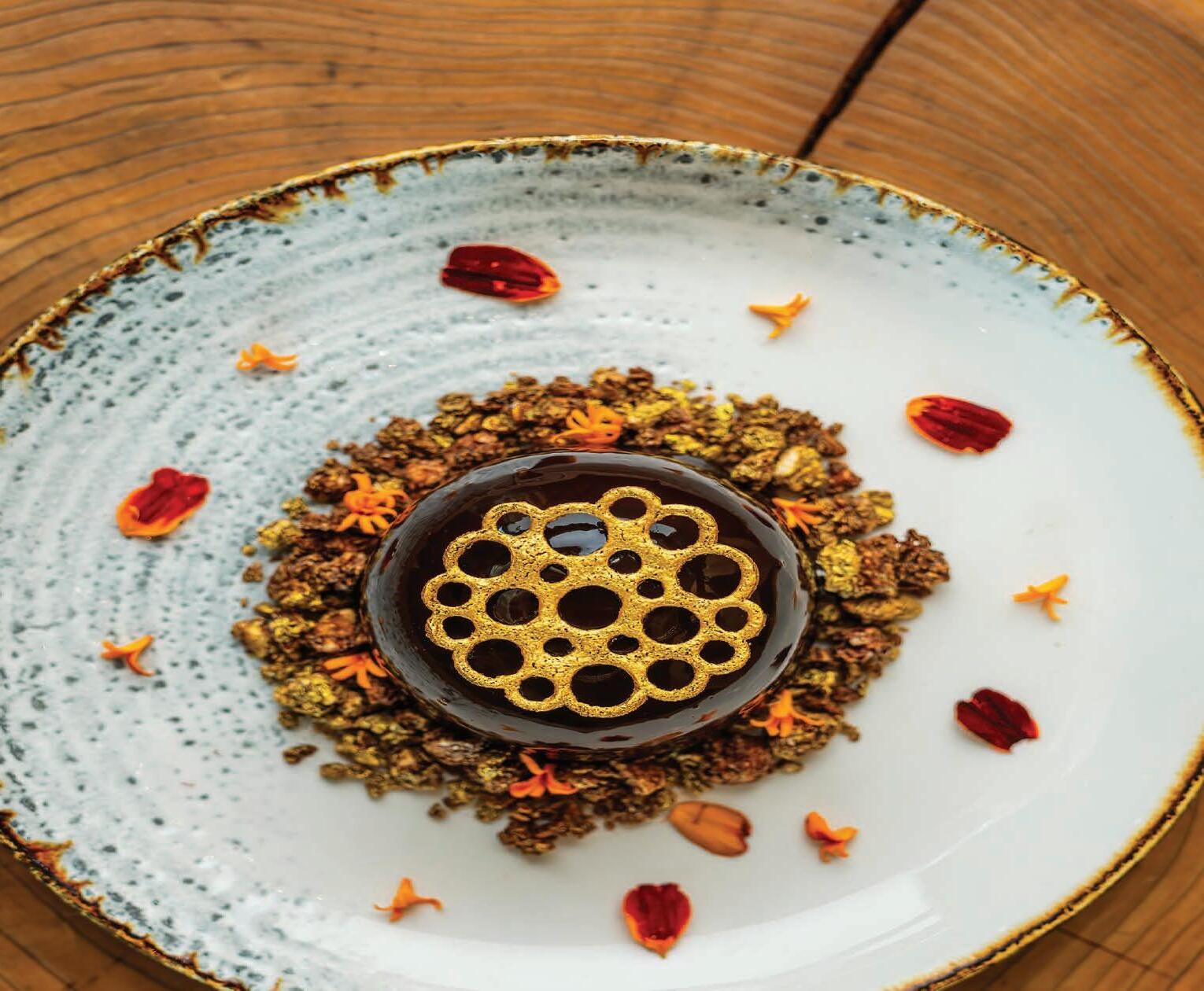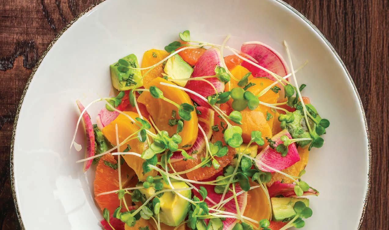 Oregon peach, roasted beets, marjoram, hazelnut, nasturtium and Dressing Royale