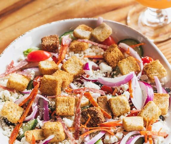 Chopped iceberg lettuce topped with turkey, ham, salami, provolone, cheddar, tomato, cucumber and onion (includes choice of dressing)