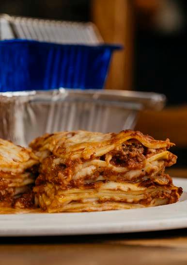 Lasagna noodles layered with Grandma K’s homemade meat sauce and mozzarella cheese