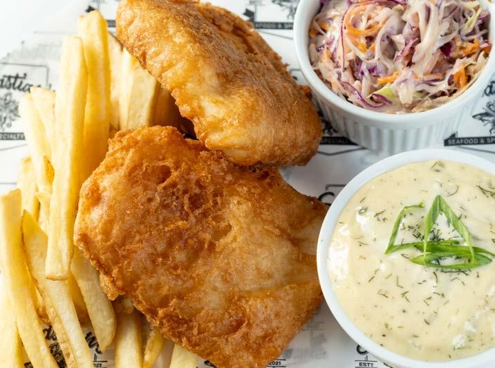 Halibut, coleslaw, tarragon tartar and fries