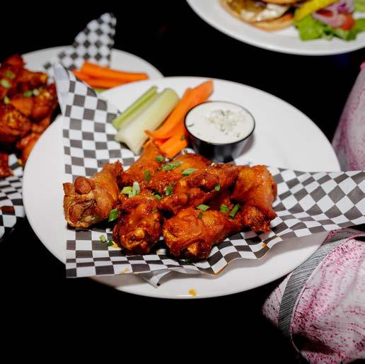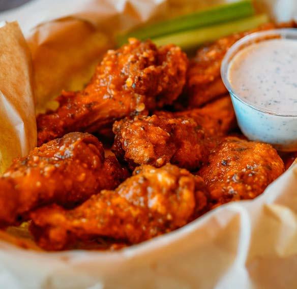 Classic buffalo, house barbecue and hot honey served with ranch, bleu cheese, sriracha aioli, carrot and celery sticks