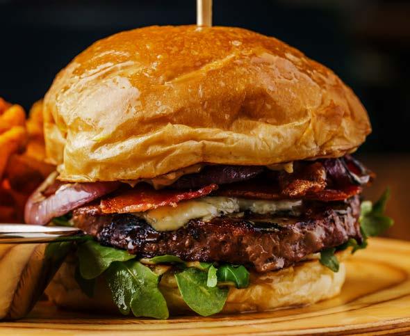 Grilled red onion, bacon, arugula, Oregon bleu cheese and truffled peppercorn aioli on a Big Ed’s potato bun