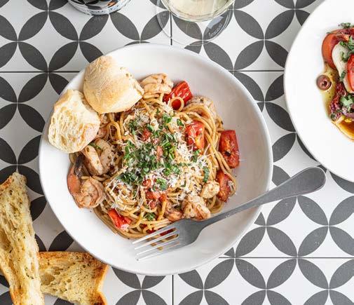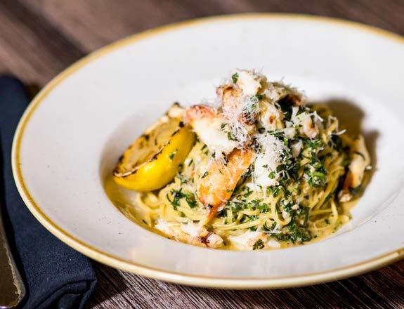Housemade pasta, Dungeness crab, Calabrian chili, garlic, soft herbs, mint, lemon and Parmesan