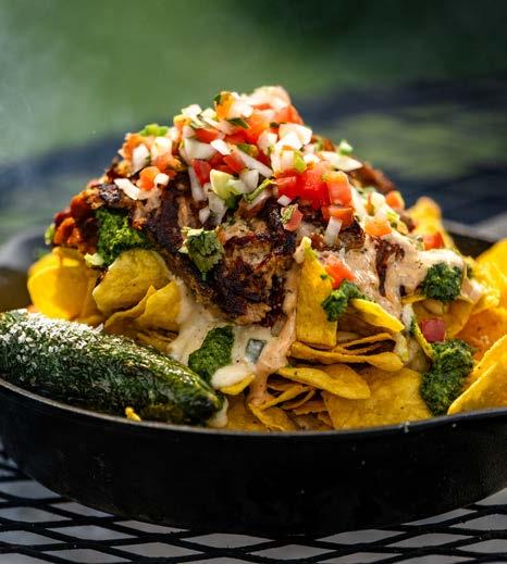 Corn tortilla chips, grilled corn, pickled onion, chilies, tomato, cilantro and cotija, served with Baja sauce