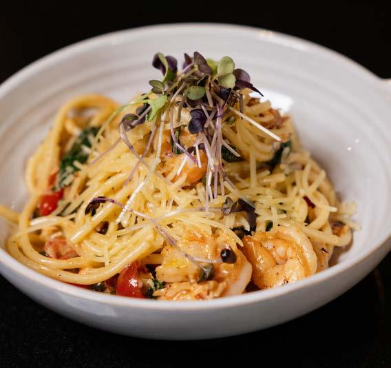 Jumbo butterfly shrimp, served in a rich, creamy Tuscan sauce with garlic, roasted red tomatoes and fresh spinach. Finished with a touch of Parmesan and parsley. Served with garlic mashed potatoes and seasonal vegetables