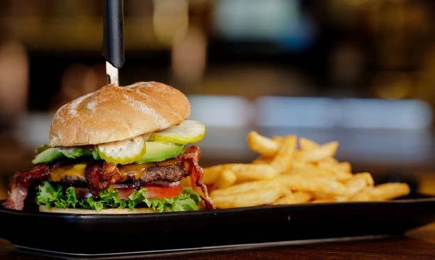 Freshly sliced avocado, hickory smoked bacon and cheddar cheese on a Newport beef patty with lettuce, tomato, onion, pickle and our house sauce