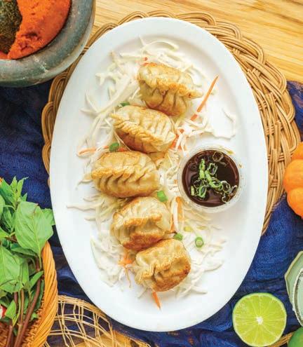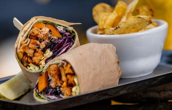 Cheese-encrusted tortillas filled with coconut hand-battered prawns, deep-fried and topped with house sauce and fresh mango salsa