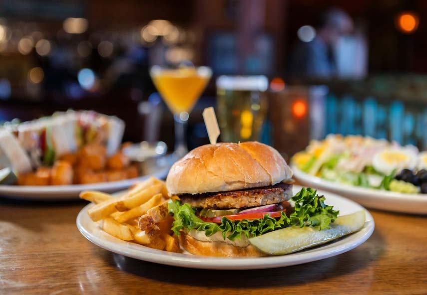 North 44 hand-pressed beef patty, aged cheddar, American cheese, lettuce, tomato, onion, mayo and pickles on a pub bun (black bean patty also available)