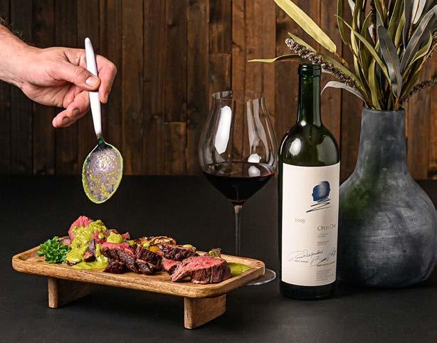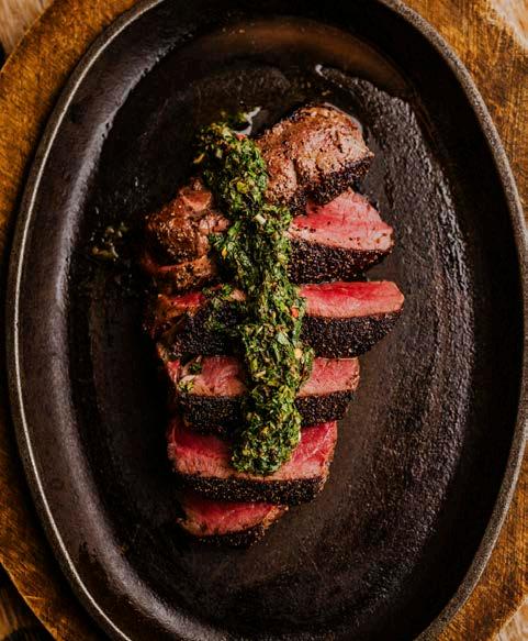 21-day aged, full bodied with a rich beefy flavor New York Strip steak grilled to order and topped with a chimichurri compound butter and served with garlic mashed potatoes and seasonal vegetables