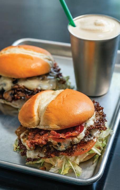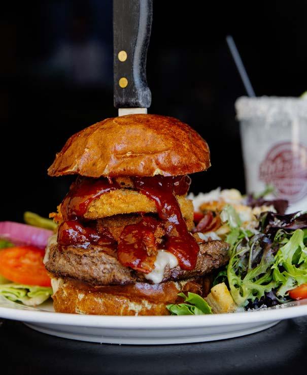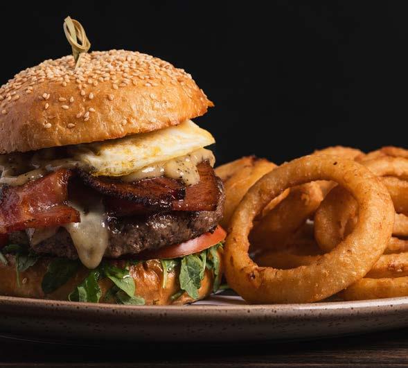 Grilled red onion, bacon, arugula, Oregon Blue cheese and truffled peppercorn aioli on a Big Ed’s potato bun