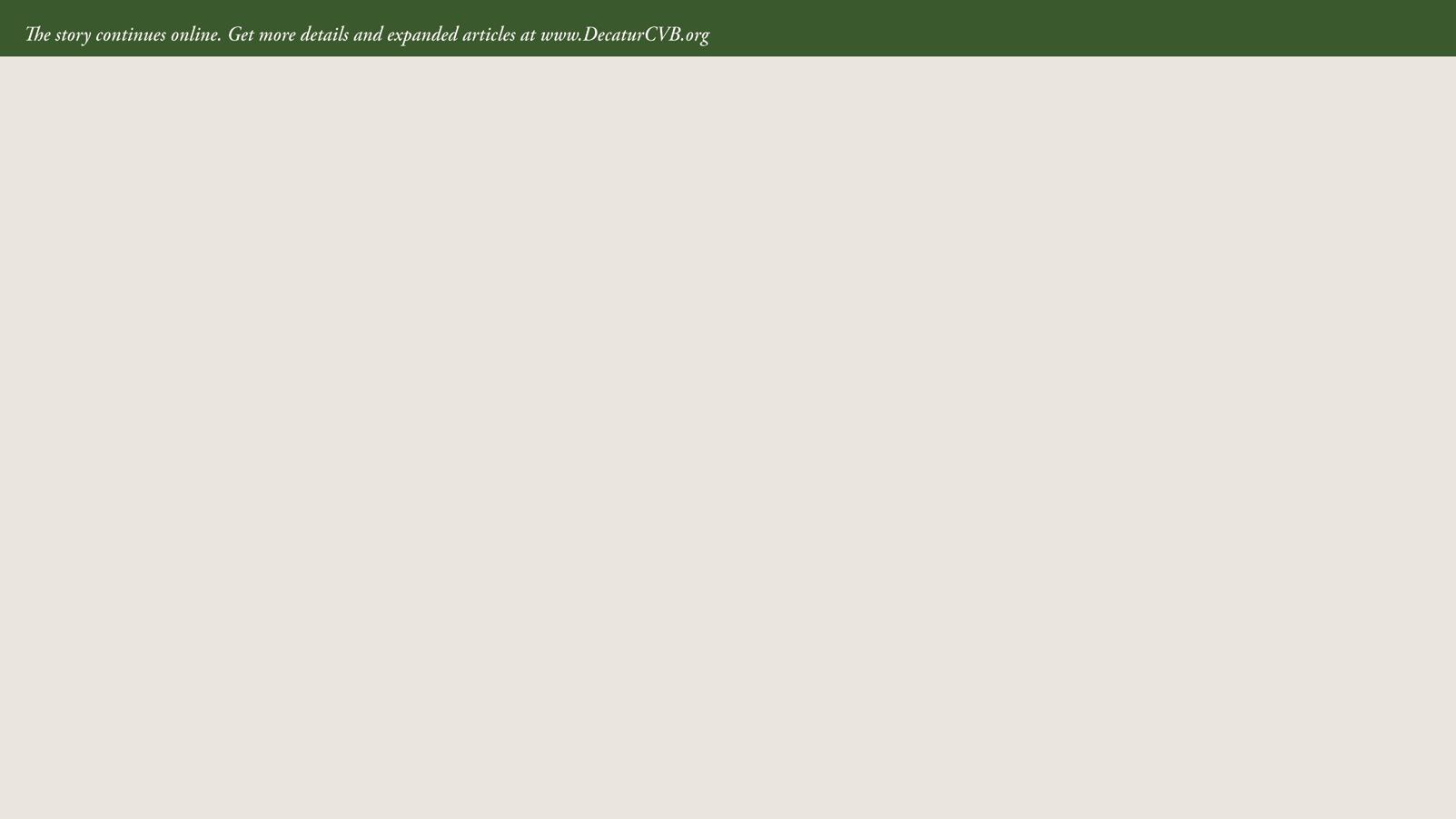 OLD TOWN FOR ADDITIONAL INFORMATION PLEASE VISIT MORGAN COUNTY ARCHIVES 624 Bank St NE, Decatur, AL 35601-1608; 256/351-4726 CONVENTIONS AND LARGE GROUPS WELCOME! DECATUR-MORGAN COUNTY TOURISM 719 6th Ave SE, Decatur, AL 35601 800/232-5449 or 256/350-2028 | www.DecaturCVB.org